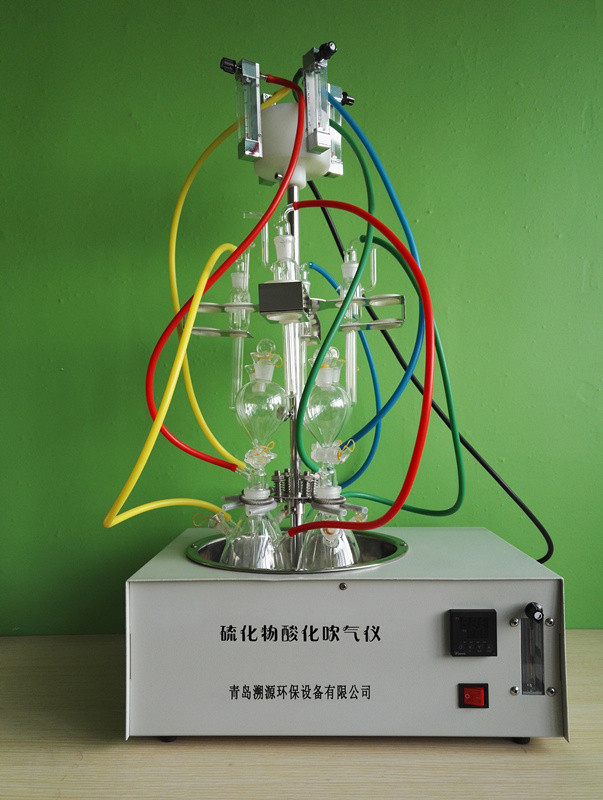 针对污水、工业废水等水样中的硫化物检测中繁琐、复杂的酸化吹气的前处理过程我公司设计出GGC-400型水质硫化物-酸化吹气仪,该款仪器是按照国标《GB/T16489-1996水质硫化物的测定--亚甲基蓝分光光度法》、《HJ/T60-2000水质硫化物的测定 碘量法》和《HJ 833-2017 土壤和沉积物 硫化物的测定 亚甲基蓝分光光度法》的要求设计的,完全可以满足实验前处理要求,该仪器具有操作简单、样品均一性高、大大降低有害气体的损伤、处理样品量大等特点。
